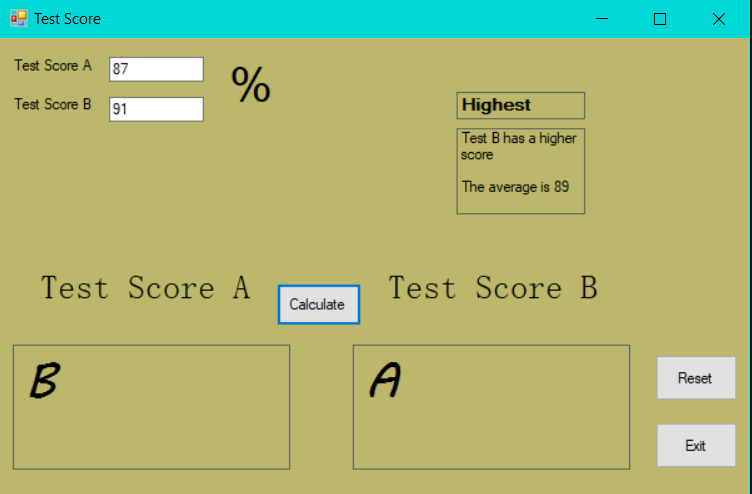 percent and convert it into a letter grade. Also it calculates the highest test score. |
